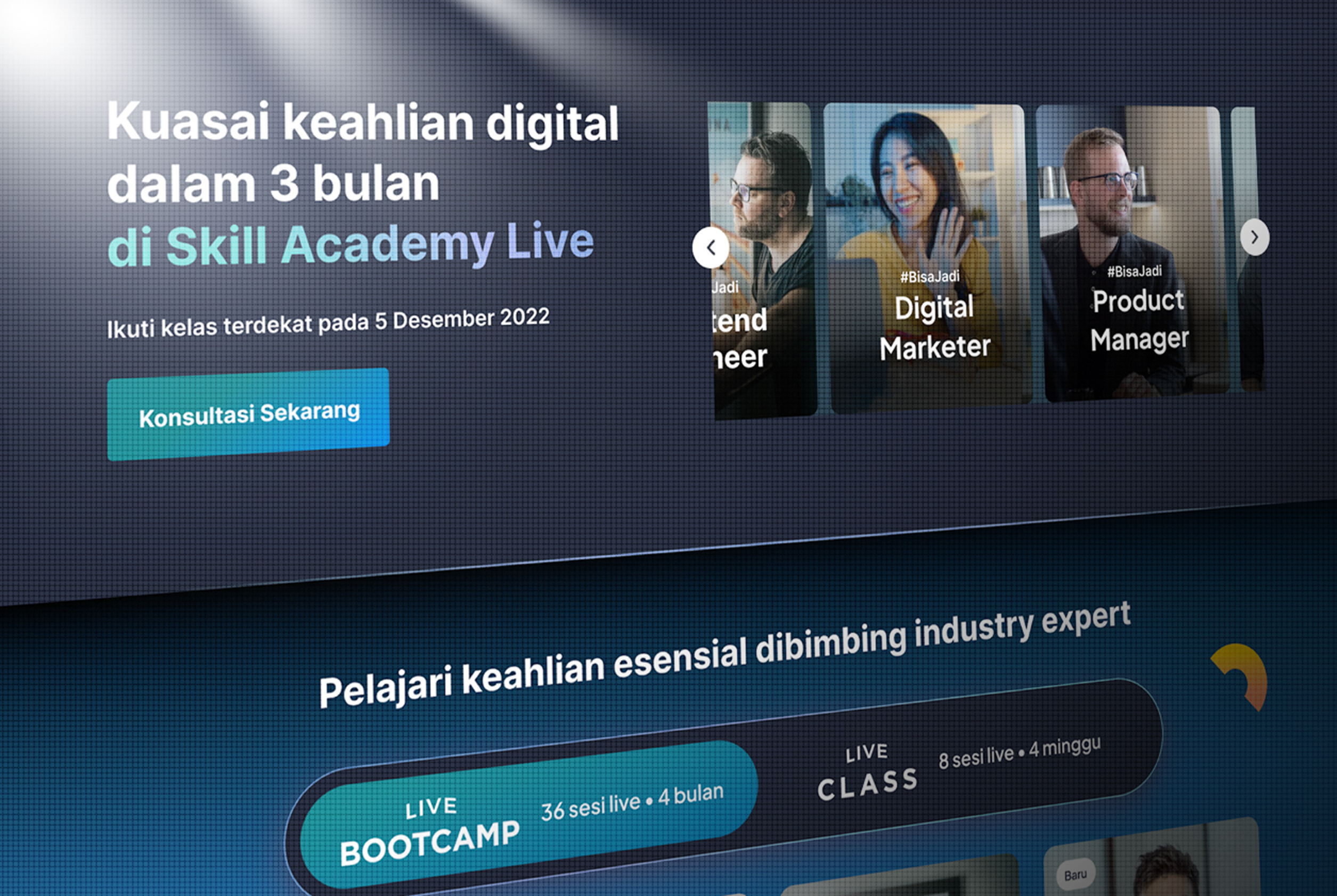 As the Lead Product Designer at Ruangguru, I managed the end-to-end design process for Skill Academy (B2C) with a primary focus on Conversion Rate Optimization (CRO) for the landing page. I led my team in redesigning the class info UI to be more compact and scannable, allowing users to quickly digest course benefits and make faster purchase decisions. By streamlining the user journey and improving the visual hierarchy, we successfully drove higher engagement and sales, reinforcing my ability to lead complex edtech projects that balance user needs with measurable business growth.